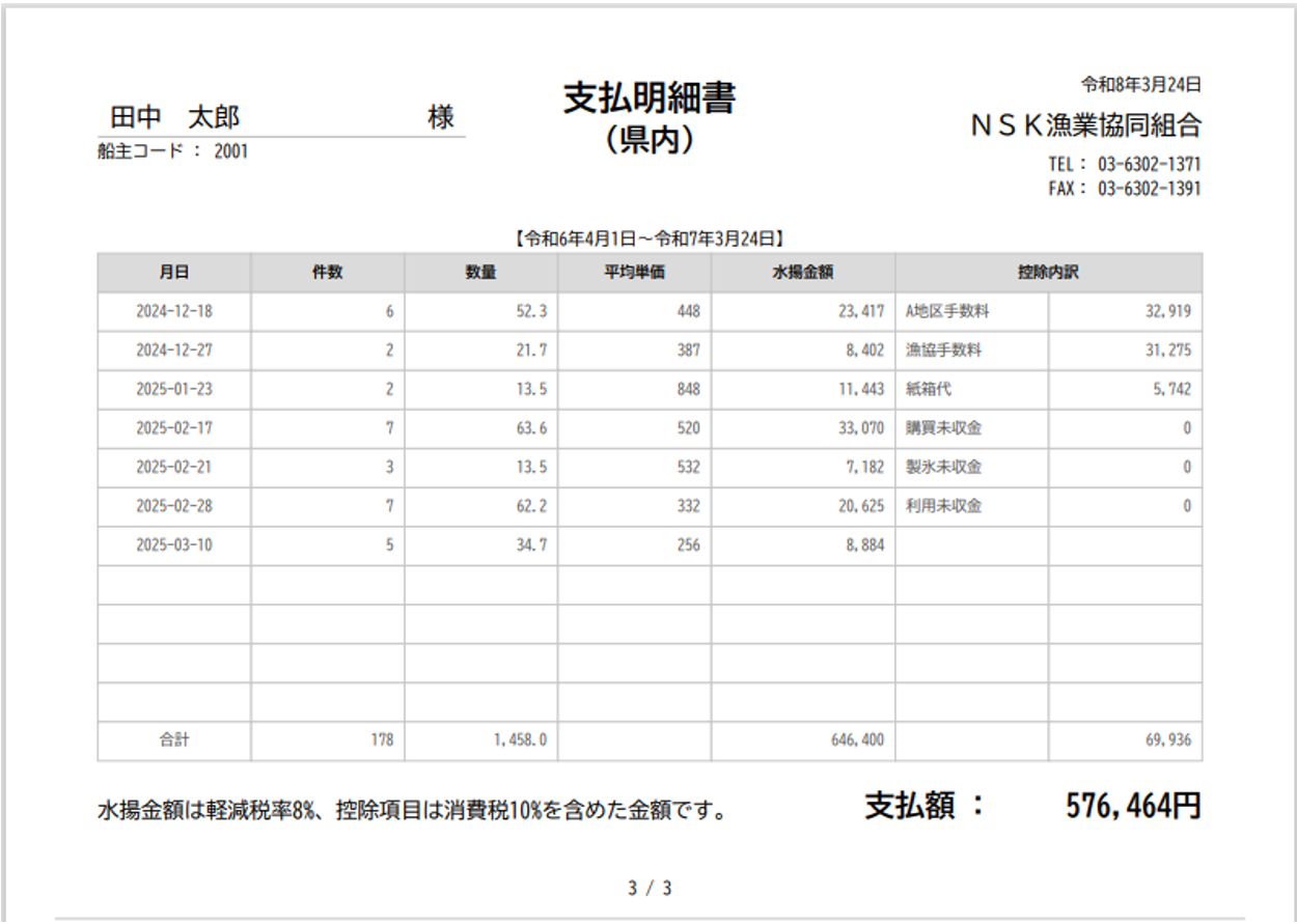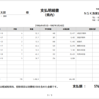 ※帳票は日次、月次、年次、船主や魚種別で集計